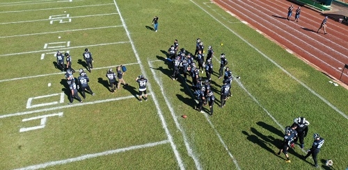 A imagem é deste domingo, quando o estádio Roberto Brzezinski, de Campo Mourão, recebeu pela primeira vez um jogo de futebol americano. Foi um amistoso contra Francisco Beltrão. E deu o time da casa - Black Rams: 8 a 7 sobre o Red Feet. De virada. Segundo os organizadores, cerca de 600 pessoas foram ao estádio.