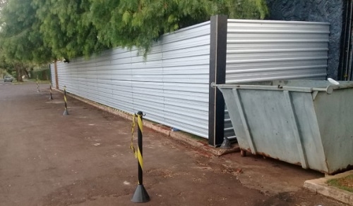 "Na rua São José, em Campo Mourão, o tapume ocupou toda a calçad, obrigando o pedestre a andar pela via".
