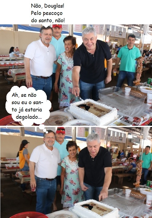 Os cliques são deste domingo, na churrascada anual do Lar do Velhinhos de Campo Mourão. O deputado Douglas Fabrício arrematou um dos bolos do leilão e fez o primeiro corte observado pelo prefeito Tauillo Tezelli. O bolo tinha a imagem de São Vicente de Paulo, o padroeiro da entidade. O secretário de Estado Márcio Nunes foi outro presente, também com direito a remates no leilão beneficente.