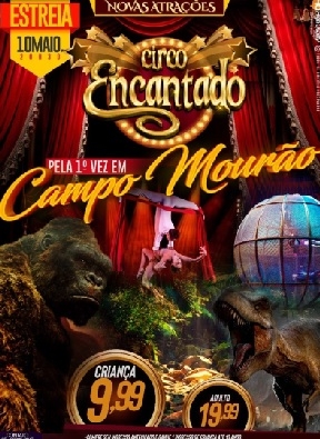 Elefante? Leões? Tigres de Bengala? Isso é coisa do passado. O Circo Encantado, que estreia nesta sexta-feira (20h30) em Campo Mouráo anuncia um dinossauro. A atração é inédita na cidade. O Encantado vem pela primeira vez a Campo Mourão, mas pertence a membro da família Robatini, tradicional na arte circense e que já passou por aqui com outros circos. O Encantado está ao lado da rodovária.