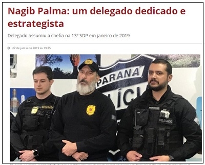 Lembra que delegado Nagib Nassif Palma, que comandou da 16.a SDP? Não está mais em Cascavel, não, para onde foi quando deixou Campo Mourão. Desde janeiro é o delegado-chefe em Ponta Grossa. Pelo visto, vem fazendo sucesso por lá. A reportagem acima saiu no jornal "Correio dos Campos". Um outro texto diz que a polícia elucidou mais de 80% dos homicídios do ano em Ponta Grossa.