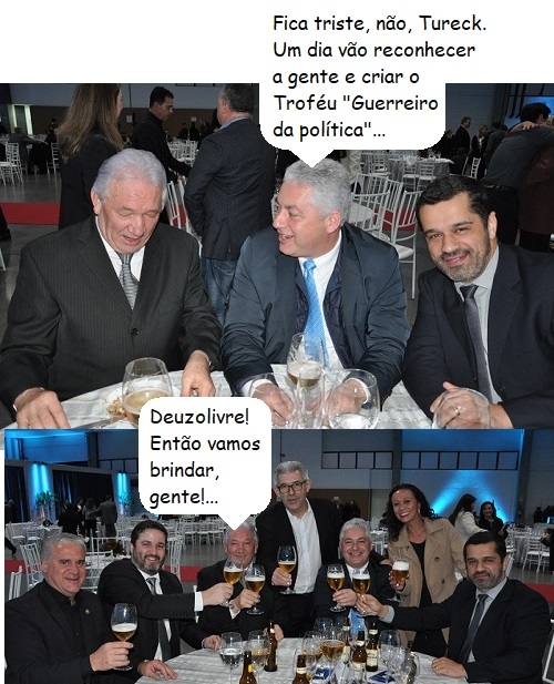 O ex-prefeito Nelson Tureck e o deputado Douglas Fabrício ficaram lado a lado nesta sexta-feira, durante a entrega do Troféu Guerreiro do Comércio, em Curitiba. Os dois foram adversários na eleição pela prefeitura de Campo Mourão, em 2004 (aquela, que Tureck venceu por 281 voto!).