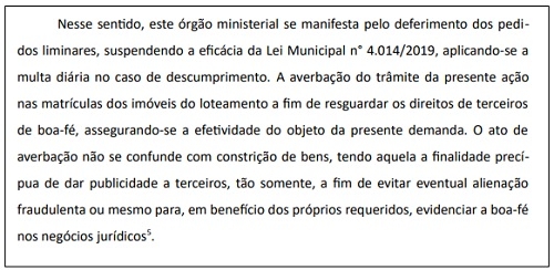O MP se manifestou na ação apresentada pelo vereador Luiz Alfredo.