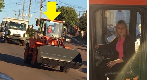 Teve desfile pelas ruas de Altamira do Paraná para marcar a chegada de novos veículos e máquinas. Foi uma pá-carregadeira, um caminhão caçamba, uma van e uma ambulância. Agora, adivinhe quem saiu "pilotando" a pá-carregadeira? Ela mesma, a prefeita Elza Aguiar. Ah, tá pensando o quê!...