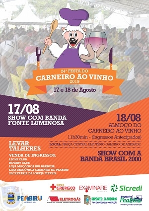 A prefeitura de Peabiru divulgou a programação da 24ª Festa do Carrneiro ao Vinho.