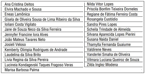 A relação foi publicada no Órgão Oficial (veja lista acima).