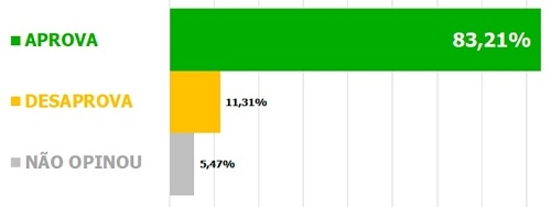 Instituto Opinião, entre os dias 13 e 15 de julho, com 598 entrevistados. A margem de erro é de 4% para mais e para menos.