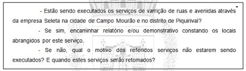 Também quer saber se existem estudos para conter "as excessivas ocorrências" de assaltos no local.