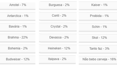...Brahma, com 22% da preferência dos internautas.