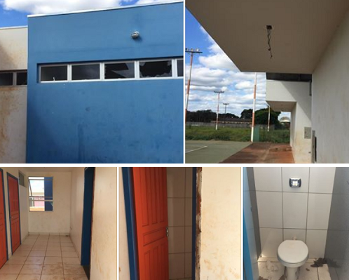 "Será somente vandalismo? Neste caso ou temos também o descaso da prefeitura com a Praça da Juventude, inaugurada final do ano retrasado. Salas sendo utilizadas como depósitos, o mato tomando conta, paredes e vidros quebrados, paredes sujas, portas de vestiários quebradas e banheiros imundos".