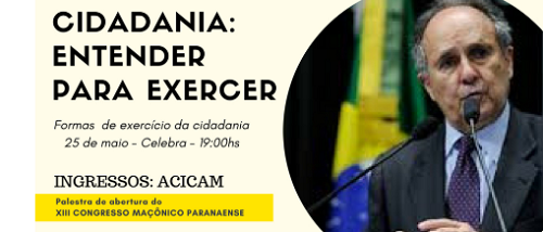 Será na abertura do 12.o Congresso Maçônico Paranaense.
