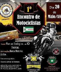 Boa Esperança - Acontece no próximo domingo (10h) o 1º Encontro de Motociclistas, com a Banda Motores Ácidos. Será no Parque Ecológico., com almoço na lanchonete do parque R$ 20. O encontro vai abrir a Semana Adrenalina, que inclui uma série de outras atividades.