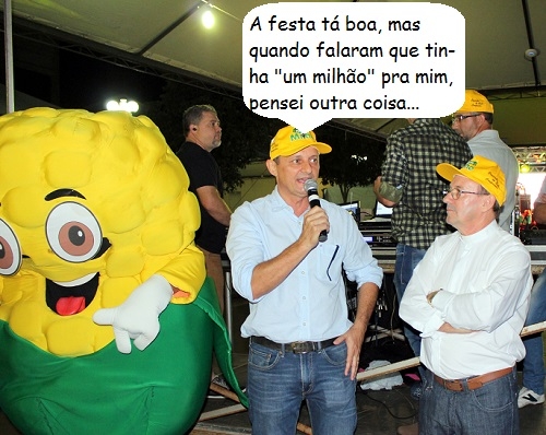 O clic é desta sexta-feira, na abertura oficial da 10ª Festa do Milho de Goioerê. A promoção é da paróquia Nossa Senhora das Candeias, com apoio da prefeitura. O prefeito Pedro Coelho discursou ao lado do padre José Elias, um dos coordenadores do evento, e do "Milhão" mascote do evento.
