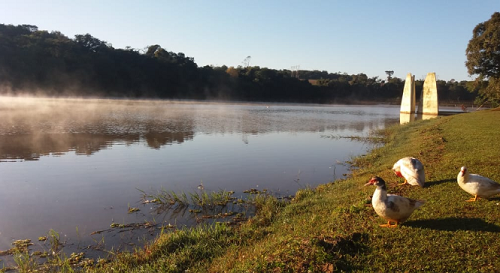 Manhã gelada, nesta terça-feira, no Parque do Lago. Edilson Martins