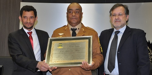 O sargento José Aparecida da Silva, do 11º BPM, recebeu nesta terça-feira o título de Mérito Militar da Câmara de Campo Mourão. A entrega foi feita pelo vereador autor, Cabo Cruz, e pelo prefeito Tauillo Tezelli. O comandante do batalhão, major Júlio César da Rosa, prestigiou o evento. O sargento, de 46 anos, nasceu em Campo Mourão e está na Polícia Militar desde 1995.