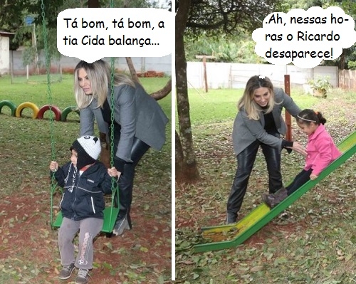 Os cliques são desta sexta-feira, na escola do distrito de Sertãozinho, em Engenheiro Beltrão. A governadora Cida Borghetti passou por lá e acabou dando uma mãozinha no parquinho. O maridão, o deputado federal Ricardo Barros, não apareceu para dar uma mãozinha, não...