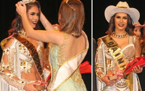 ...Milena Gois Bassete! A estudante, de 18 anos, foi escolhida em concurso realizado neste sábado à noite, no Teatro Municipal. Tátila Faria, a rainha de 2016, passou a coroa. O prêmio para a vencedora é R$ 2 mil. O cheque simbólico já foi entregue pelo prefeito Tauillo Tezelli. Kamila dos Santos Pereira ficou como princesa da festa. Nove candidatas participaram do concurso.