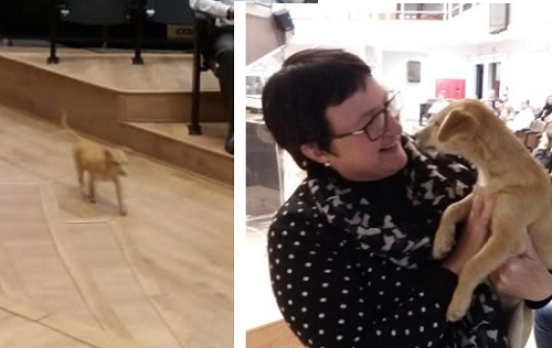 Olha quem apareceu na sessão da Câmara desta segunda-feira. Uma simpática cachorrinha. Ainda filhote, ela não se fez de rogada e foi logo entrando na "casa do povo". Acabou recolhida pela vereadora Elvira Schen, famosa pelo trabalho em defesa dos animais abandonados.