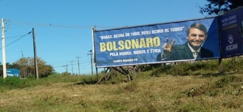 A Justiça Eleitoral mandou retirar os dois outdoors com propaganda do pré-presidenciável Jair Bolsonaro em Campo Mourão.