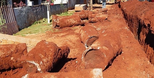 A tubulação da rua Amantio Cavalheiro estava toda entupida e será substituída por 130 tubos novos.