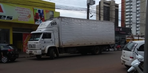 Pode isso Arnaldo? A carga e descarga fora do horário legal continua comum em Campo Mourão. Esse ai´estava às 13h na rua Mato Grosso.