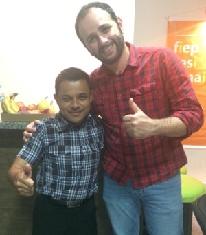 Não tem show com artista famoso? Não tem visita de autoridade política? Não tem importância. O "recepcionista oficial" de Campo Mourão, Magnum Alves, não para, não. Esta semana ele bateu ponto da Empreende Week, no Parque de Exposições. Olha ele aí, com o youtuber Iberê Thenório, que ministrou palestra na quarta-feira.
