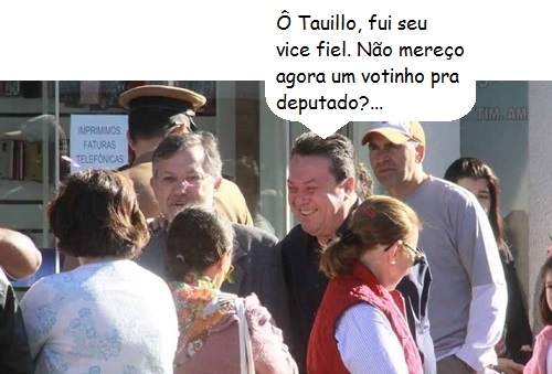 Olha aí mais um clic do desfile de 7 de Setembro em Campo Mourão. Em campanha para reeleição, o deputado Márcio Nunes se encontrou com o prefeito Tauillo Tezelli. Nunes foi vice no primeiro mandato de Tauillo, lá no final dos anos 90. Agora, no entanto, os dois fazem parte de grupos políticos diferentes. Nem adianta um pedir voto pro outro...