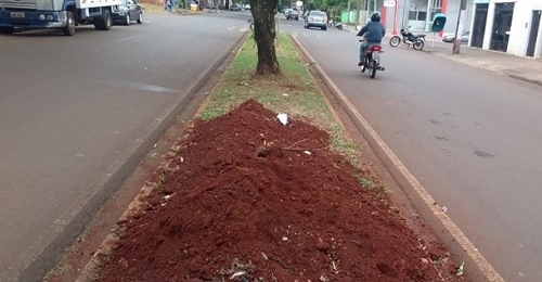 Quando a gente pensa que já viu de tudo pelos canteiros centrais das avenidas de Campo Mourão, aparece umas "exclusivas". Na av. Goioerê, por exemplo, foi colocado um monte de terra.