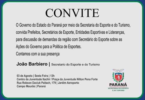 João Barbiero estará em Campo Mourão porque à noite, no Ginasião, tem abertura dos Jogos Escolares do Paraná.