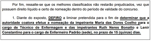 Para a juiza, a nomeação das três é um "direito líquido e certo".