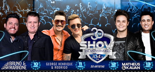 No sábado será a vez de Henrique & Rodrigo e, domingo, 30 shows para marcar dos 30 anos da 104 FM.