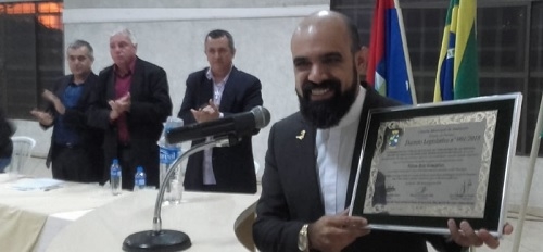 O padre Nilson Reis Gonçalves recebeu nesta terça-feira o título de Cidadão Honorário de Janiópolis. A entrega foi feita em sessão solene com a presença de cinco dos nove vereadores. A homenagem foi proposta pelo vereador José Cláudio Prado. O ex-prefeito Lola Poera prestigiou o evento. Padre Nilson atualmente atua na paróquia do Lar Paraná, em Campo Mourão.