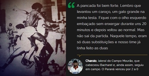 O portal UOL publicou nesta sexta-feira reportagem que lembra a morte do zagueiro Vagner, do Paraná. Foi em abril de 1990, seis dias depois de uma pancada na cabeça durante um jogo contra o Sport Campo Mourão. O time mourãoense era caçula na primeira divisão e esse foi o primeiro jogo do "Leão do Vale" em Curitiba. O choque de cabeça foi com o lateral Charuto, do Sport, que foi entrevistado pelo UOL.