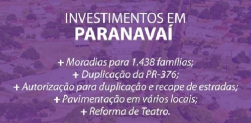 Olha o quadro que a governadora Cida Borghetti postou em sua página no Facebook, nesta quarta-feira. Fala dos investimentos que o governo fez em Paranavaí. Hummmmmmm...