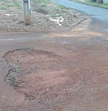 "Buraco na rua Mogno, no jardim Flora 2, parece uma piscina".