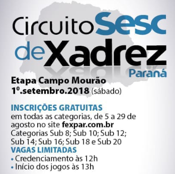 Então atenção que Campo Mourão vai sediar uma das nove etapa do Circuito Sesc de Xadrez.