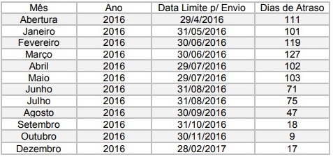 Motivo da ressalva? Atraso na entrega de dados mensais.