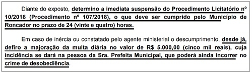 A justiça mandou suspender licitação que a prefeitura de Roncador faria em agosto para contratação de serviços técnicos.