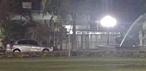 Pode isso, Arnaldo? Carro estacionado na praça Getúlio Vargas, pertinho do chafariz. Foi neste sábado à noite.