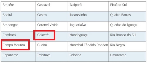Quais? Campo Mourão e Goioerê.