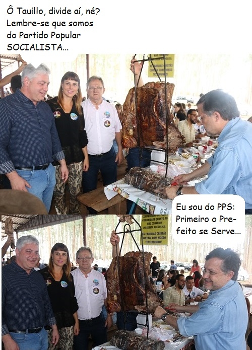 Os cliques são deste domingo, na 31ª Festa Costelão São José. O prefeito Tauillo Tezelli esteve por lá. Na foto, aparece junto com o deputado Douglas Fabrício, a ex-deputada italiana Renata Bueno e o presidente da Câmara, Edson Battilani. Tá vendo uma mão em cima do espeto? É do vice-prefeito Beto Voidelo. O deputado Márcio Nunes também participou da festa.