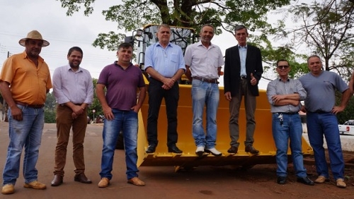 Nova Cantu - A prefeitura recebe uma nova pá-carregadeira. Custou R$ 360 mil, sendo R$ 50 mil do municipio e R$ 310 mil do Estado. O prefeiito José Carlos Gomes fez pose sobre a pá da nova máquina.