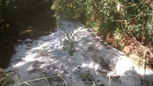Imagem feita nesta quarta-feira sobre a ponte da Avenidas das Torres, que dá acesso ao Cidade Nova. Foi após uma rápida pancada de chuva. "O córrego está tomado de espuma, provavelmente proveniente de algum despejo irregular", destaca internauta. "Gostaria que isso chegasse às autoridades ambientais para que sejam tomadas providências".