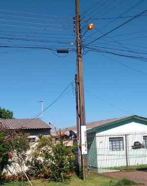 "Às 9 h42 desta sexta-feira, lâmpada acesa na rua Germano Batke, no jardim Batel".