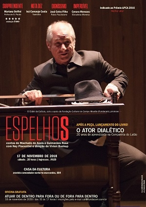 O espetáculo "Espelhos" estará no Teatro Municipal no próximo dia 17. Trata-se da peça estrelada pelo mourãoense Ney Piacentini, sucesso de público e crítica em São Paulo. Pra se ter uma ideia, ganhou cinco estrelas na avaliação do jornal "Folha de S. Paulo". No palco, contos de Machado de Assis te Guimarães Rosa. Ingressos a R$ 20.