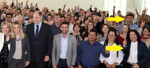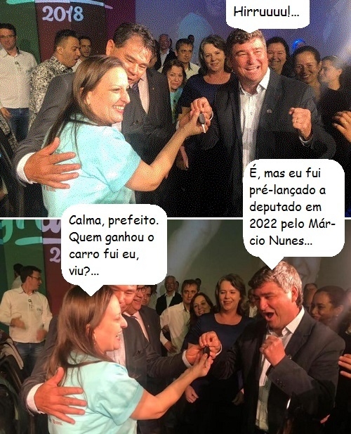 Os cliques são da semana passada, durante a entrega da premiação do programa Agrinho, da Faep. A professora Márcia Tortola Hioshimoto, da escola municipal Therezinha Bagatin, de Terra Boa, ganhou um dos carros 0 km. O prefeito Valter Peres vibrou. Pudera. Foi o sétimo veículo que o município faturou no Agrinho.