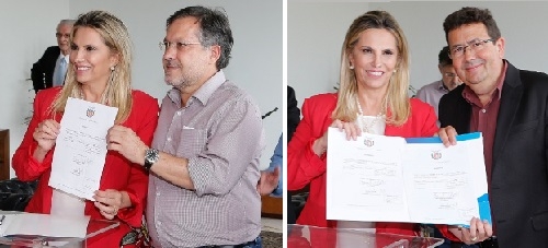 O governo do Estado anunciou nesta terça-feira a liberação de R$ 15 milhões para 35 municípios comprarem 51 caminhões para a coleta seletiva. Os prefeitos Tauillo Tezelli (Campo Mourão) e Carlos Caxão (Corumbataí do Sul) receberam a papelada das mãos da governadora Cida "Dama de Vermelho" Borghetti.