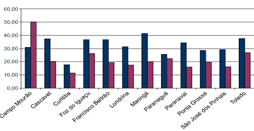 Em Paranavaí, a taxa equivale a metade da mourãoense.