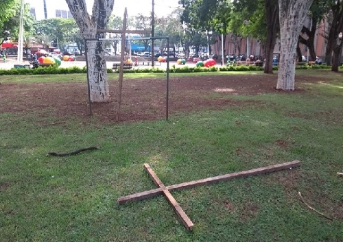 Duas cruzes foram "esquecidas" na praça São José, no centro de Campo Mourão.