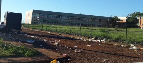Domingo, às 8h! Sujeira na rua entre a Unicampo e a UTFPR.
